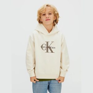 Μπλούζα λεπτό φούτερ Calvin Klein με κουκούλα Off white IB0IB02615