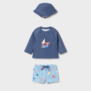 Βρεφικό σετ μαγιό μπλούζα & καπέλο Mayoral 01619 Μπλε