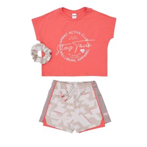 Σετ με σορτς Sprint με μπλούζα & scrunchies 261-4016 Κοραλί