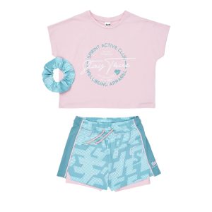 Σετ με σορτς Sprint με μπλούζα & scrunchies 261-4016 Ροζ