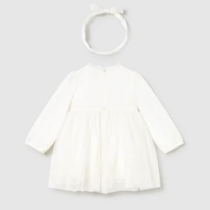 Βρεφικό φόρεμα Mayoral ενσωματωμένο κορμάκι 02812-023 Εκρού