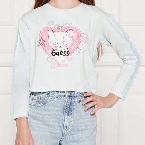 Μπλούζα Guess με απλικέ στα μανίκια & την στάμπα Μέντα K5YI03K6YW4