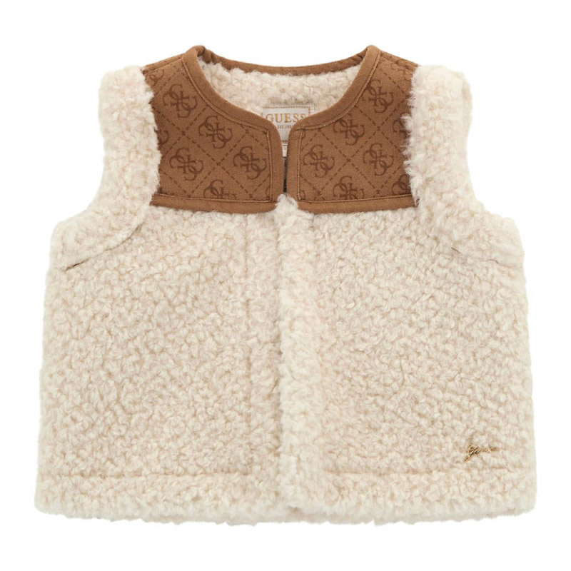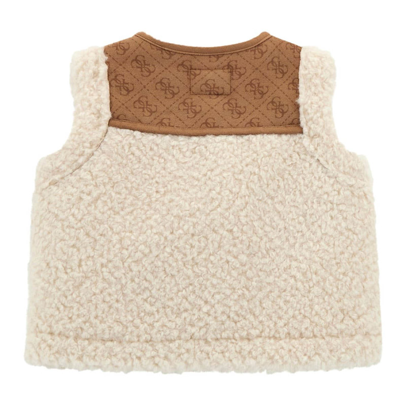 • Παιδικό αμάνικο μπουφάν Guess με μεταλλικό λογότυπο εμπρός, μάλλινο συνθετικό ύφασμα