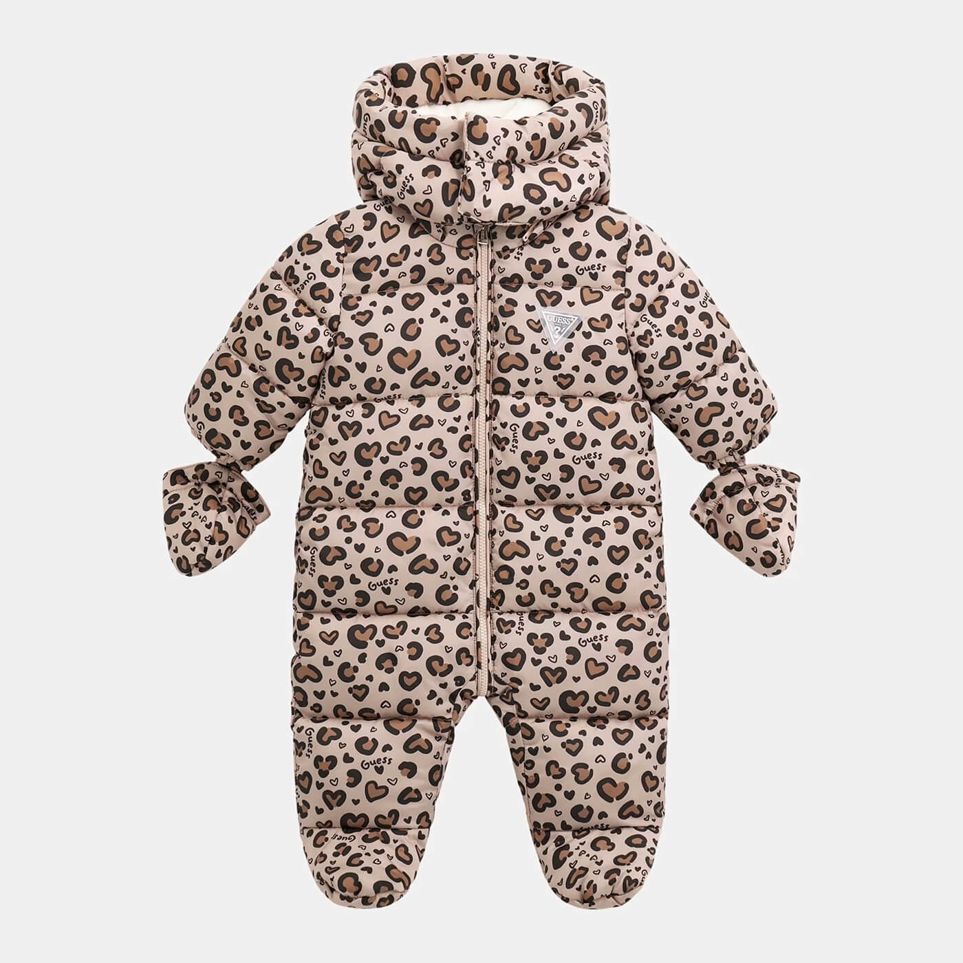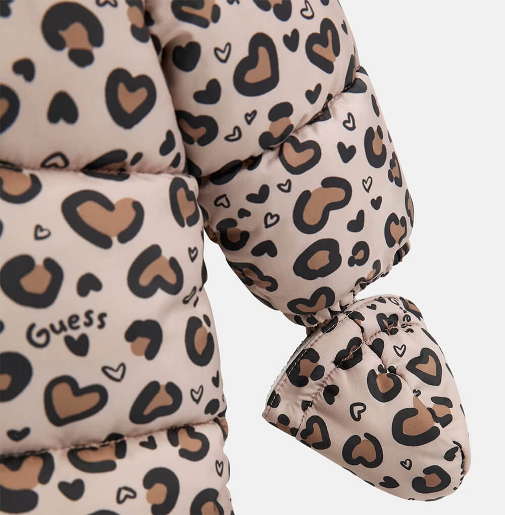 • Βρεφική φόρμα εξόδου Guess λεοπάρ με αποσπώμενη κουκούλα & γάντια για κορίτσια