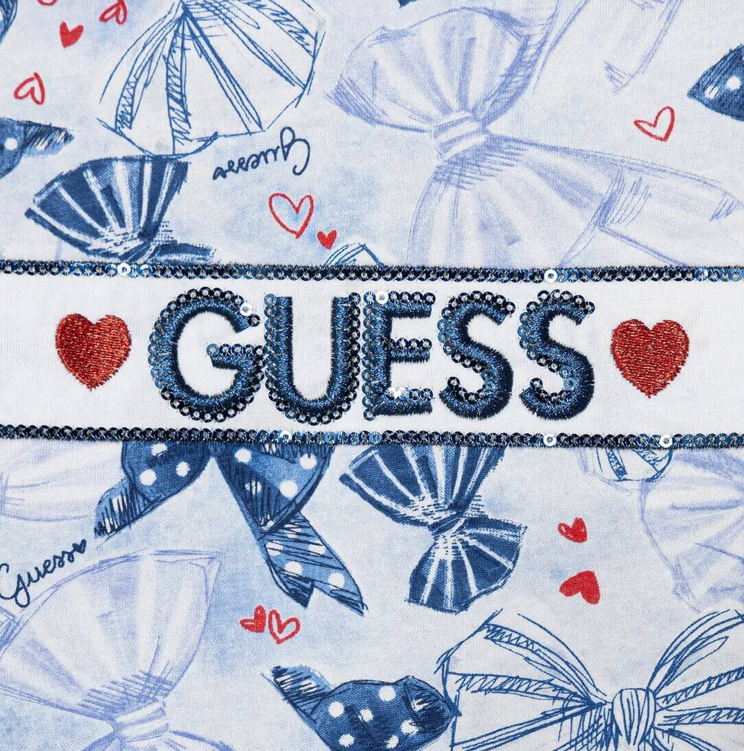 • Βρεφικό σετ Guess με κολάν από ελαστικό/μαλακό jean ύφασμα & μπλούζα με παγιέτες