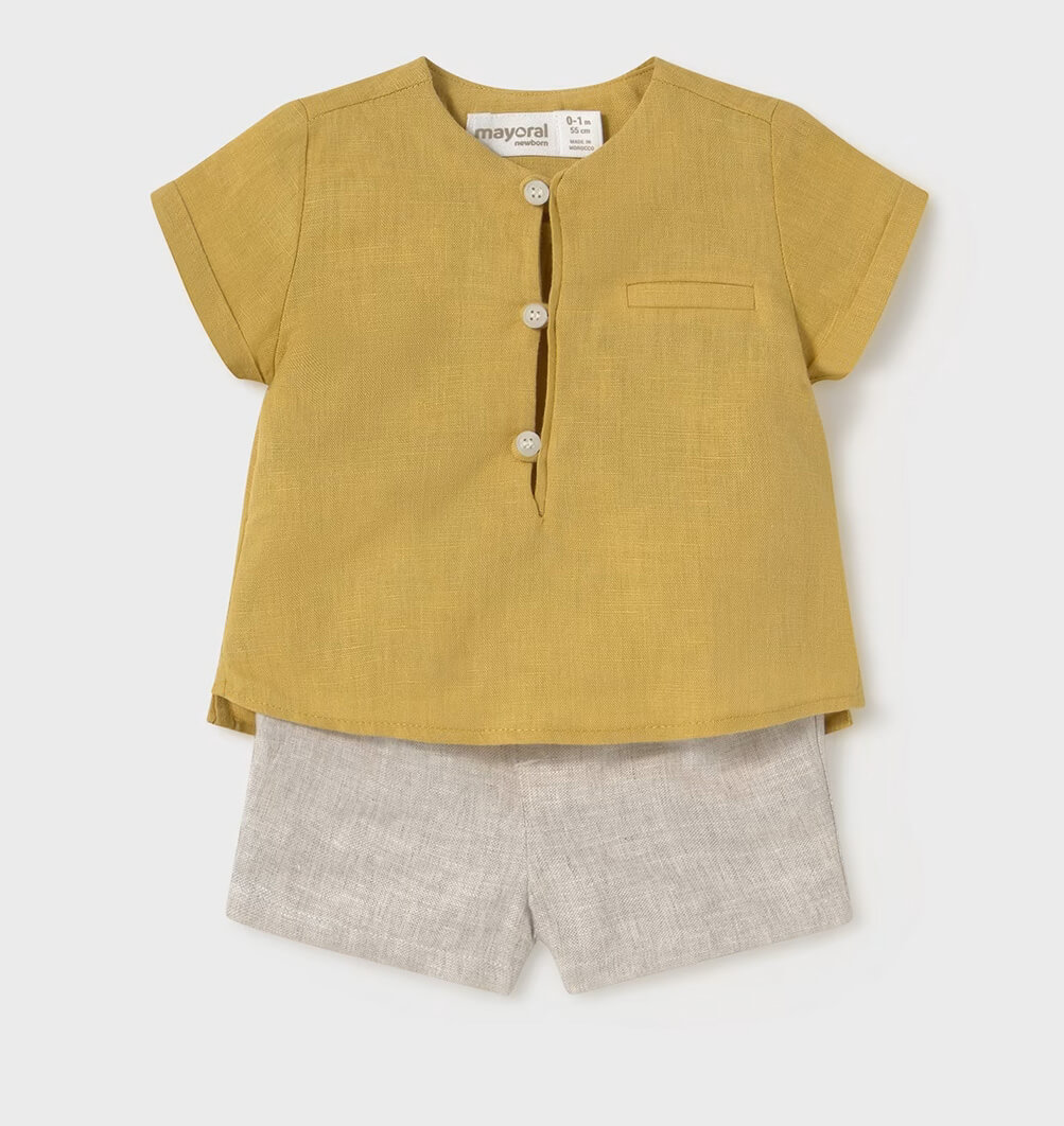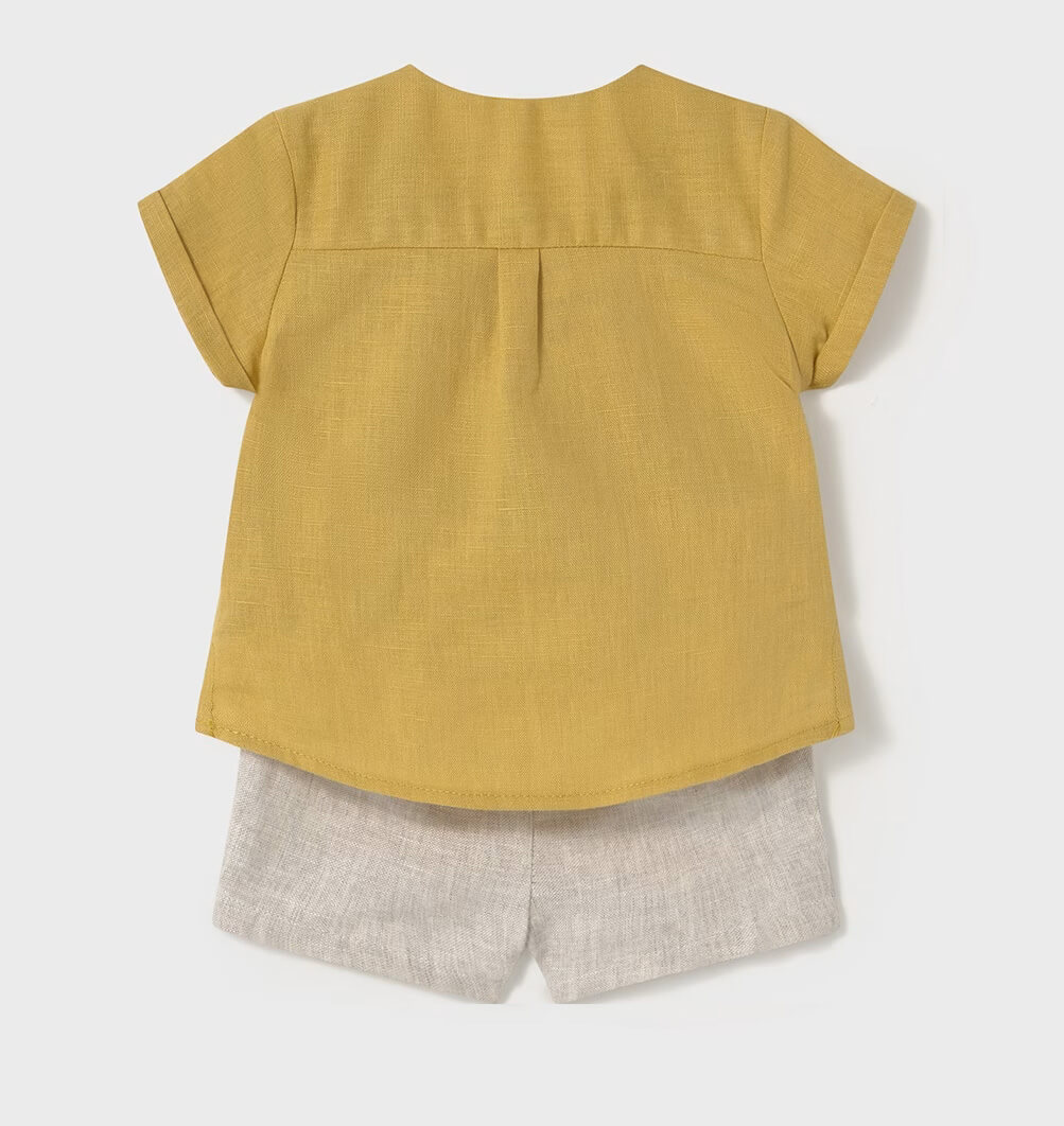 • Βρεφικό σετ Mayoral λινή βερμούδα με πουκάμισο-μπλούζα