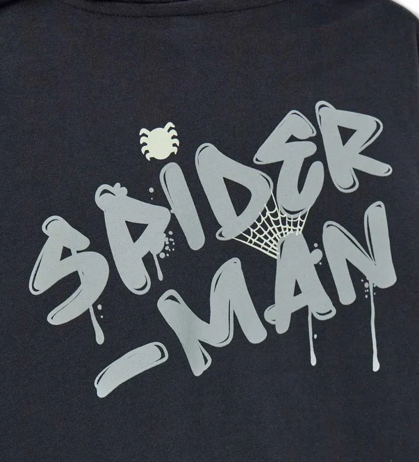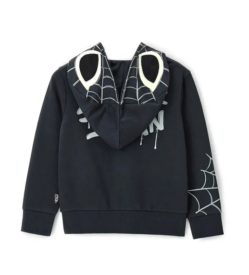 • Παιδική ζακέτα Spiderman με λεπτομέρειες που φωσφορίζουν στο σκοτάδι & μάσκα στη κουκούλα