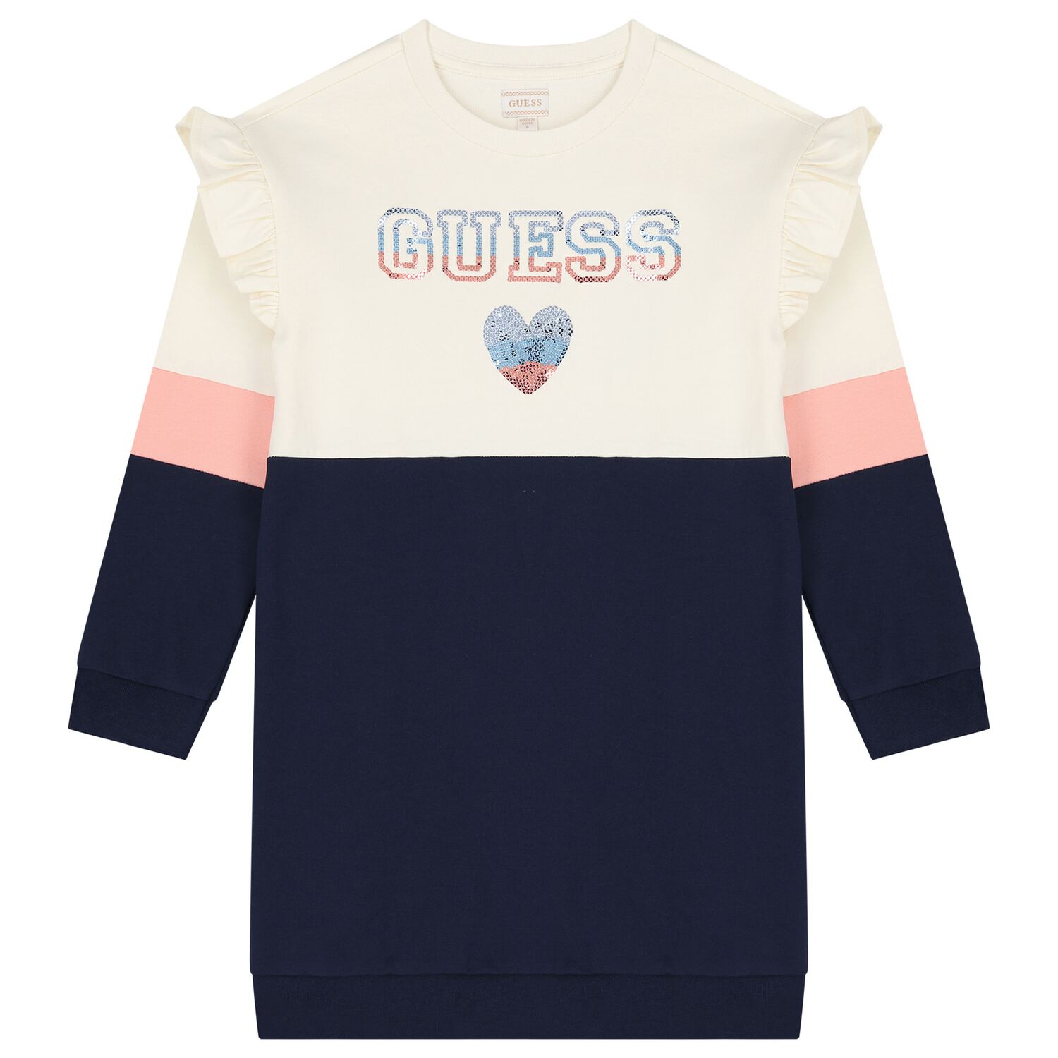 • Μπλουζοφόρεμα Guess λεπτό φούτερ με παγιέτες και βολάν στα μανίκια