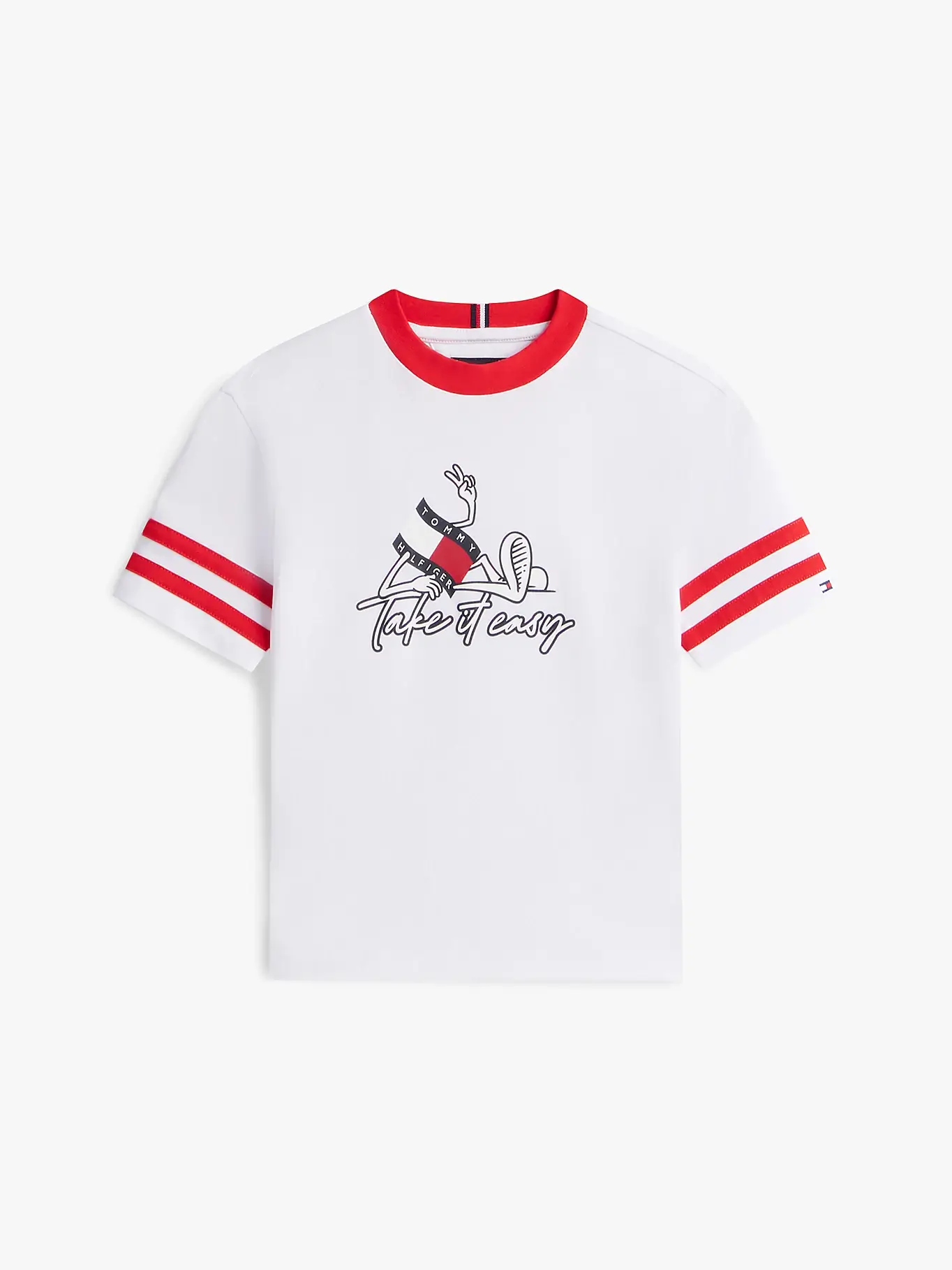 • T-shirt με κλασική λαιμόκοψη – Signature ταινία στον αυχένα – Λογότυπο Tommy Hilfiger στο στήθος – Κεντημένο σημαιάκι στο μανίκι