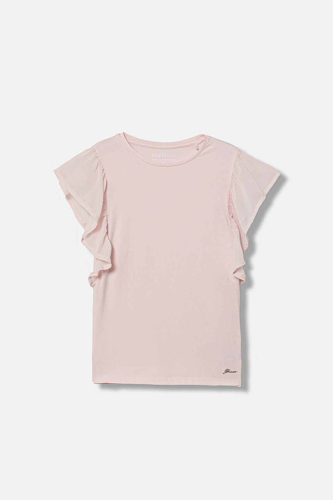 • Μπλούζα με τούλι στα κοφτά μανίκια, μεταλλικό λογότυπο Guess