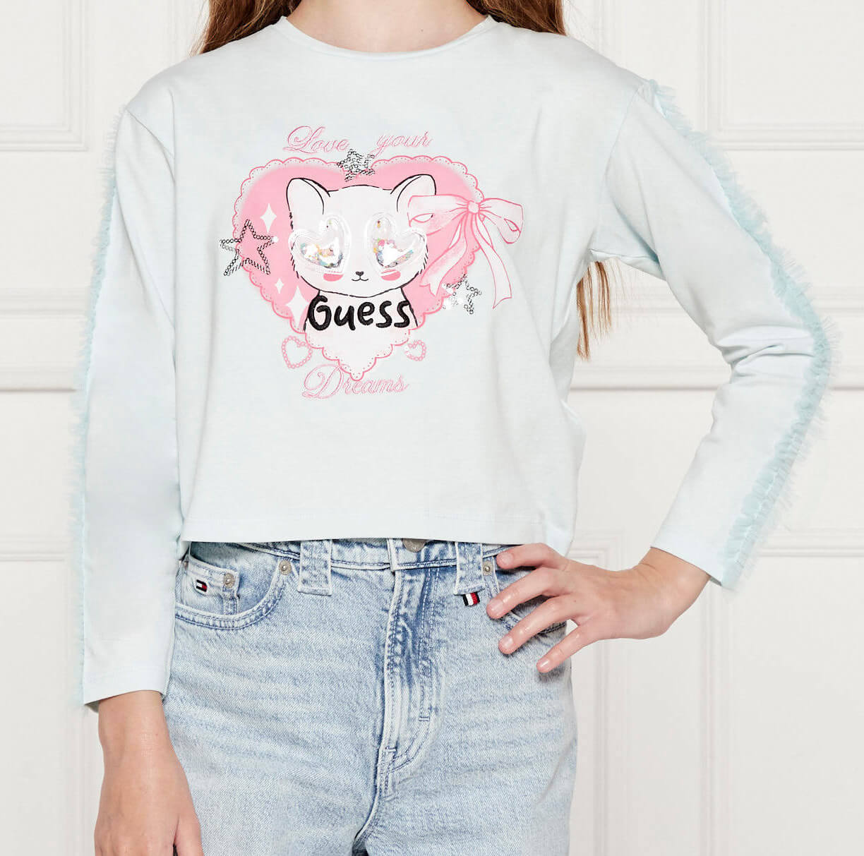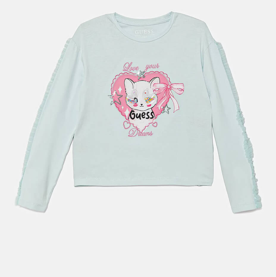 • Παιδική μπλούζα Guess με απλικέ στα μανίκια & την στάμπα στο στήθος για κορίτσια