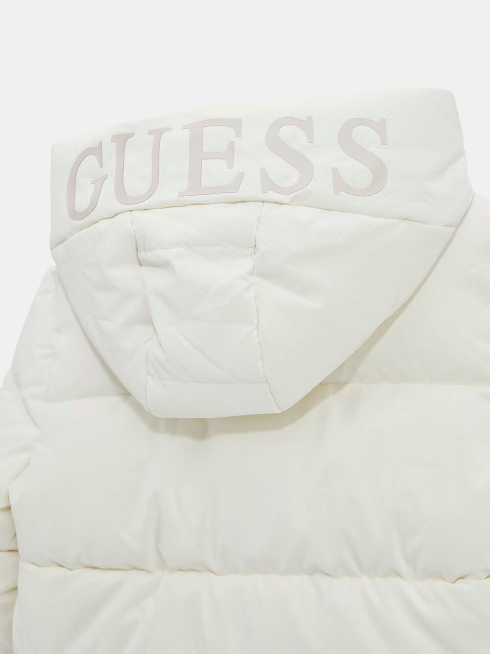 • Παιδικό μπουφάν χειμωνιάτικο φουσκωτό Guess με διακριτικά strass & κουκούλα για κορίτσια