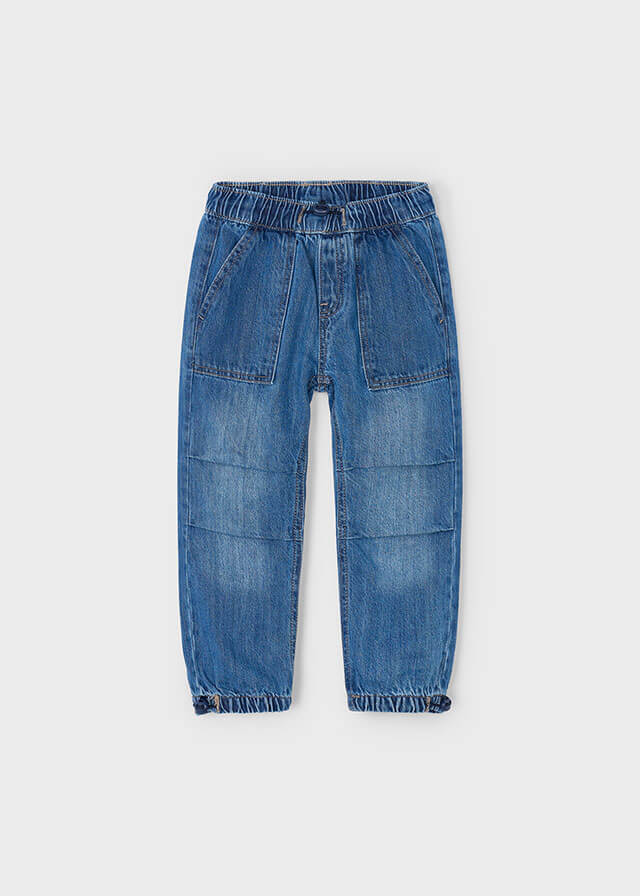 • Παντελόνι jean Mayoral relaxed fit cargo χωρίς κούμπωμα, με ρυθμιζόμενο (εμπρός) λάστιχο