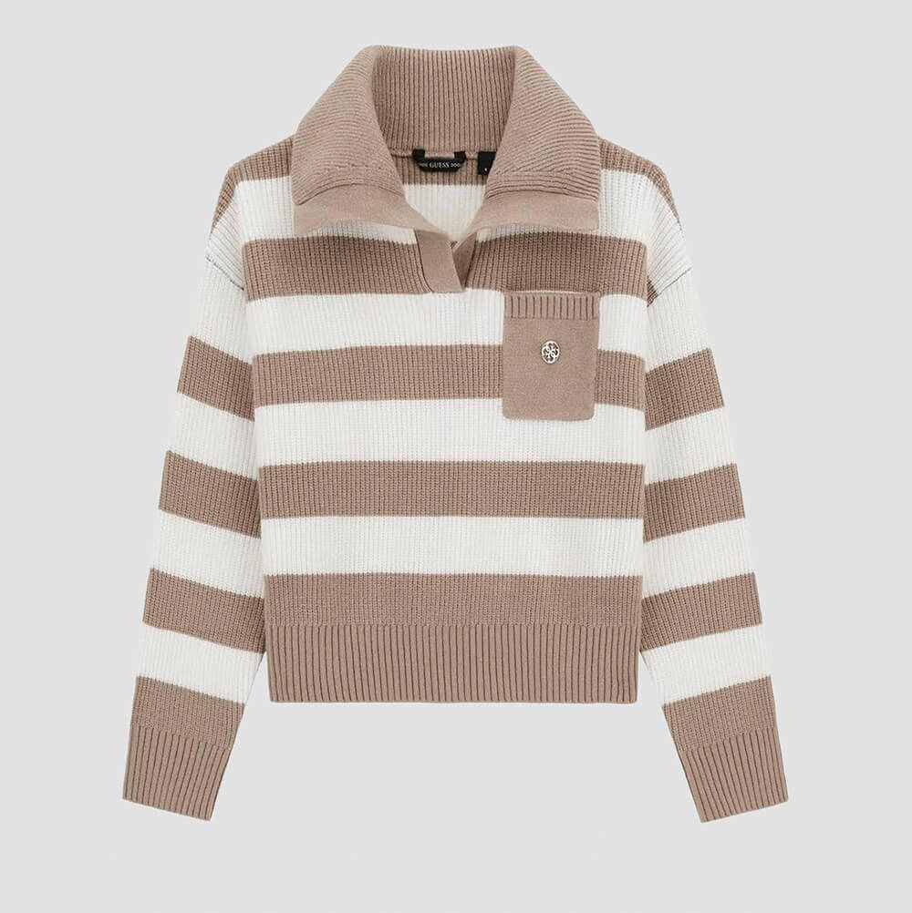 Πλεκτό πουλόβερ Guess J5YR05Z3FU0 καφέ ριγέ