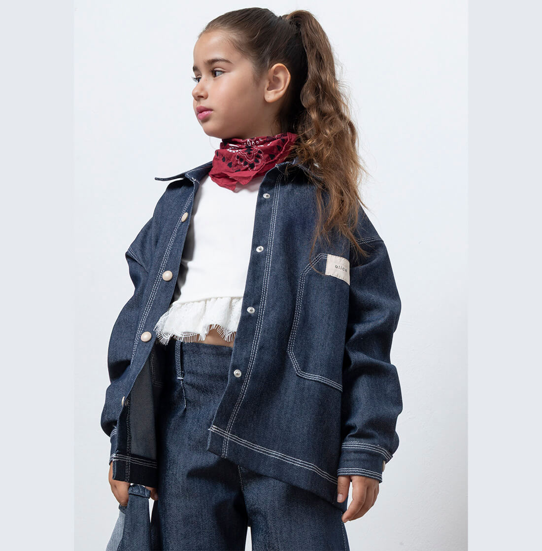 • Τζιν πουκάμισο Alice σε σκούρη απόχρωση denim, σχεδιασμένο σε μοντέρνα γραμμή και έντονες εξωτερικές ραφές σε αντίθεση
