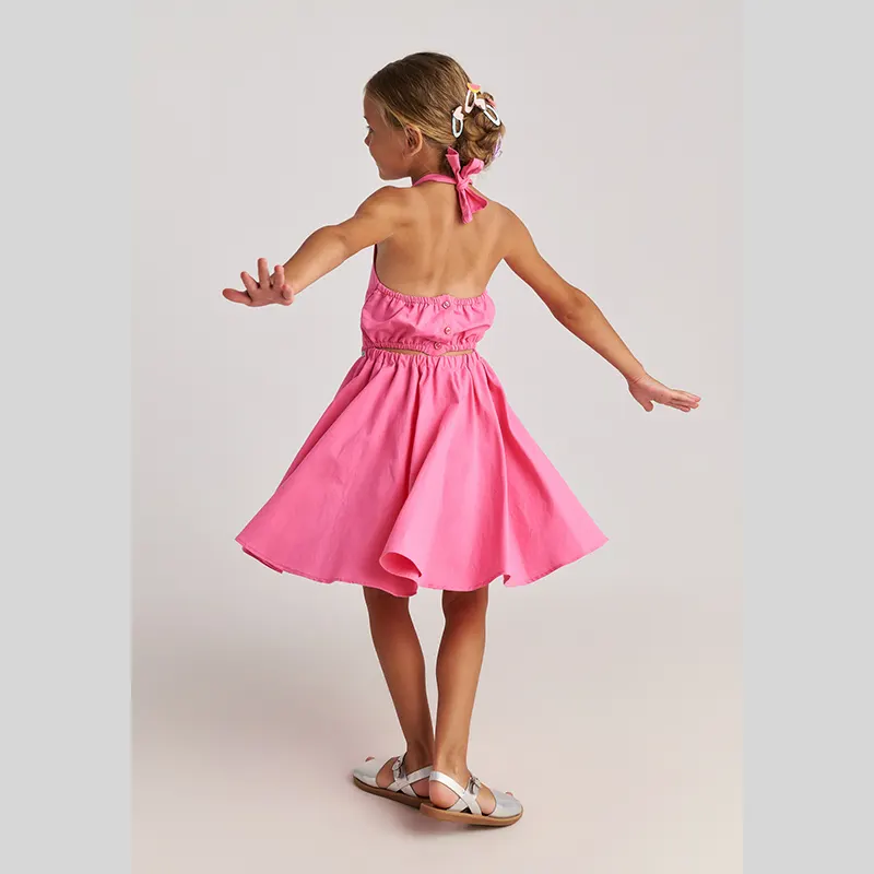 • Βαμβακερό φόρεμα από λαμπάντα φούστα & μπούστο που δένει στο λαιμό