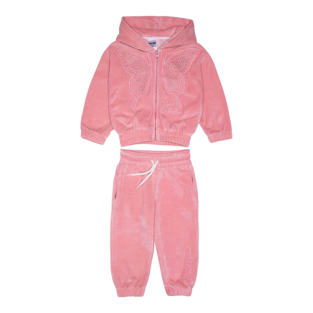 • Παιδική φόρμα βελουτέ με ζακέτα strass Sprint 252-2015 Ροζ για κορίτσια