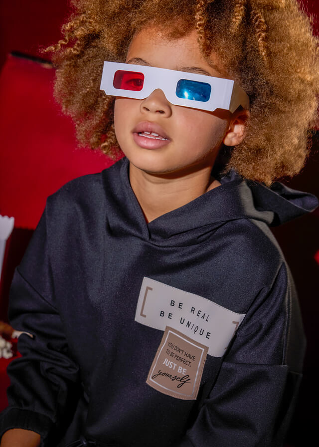 • Φούτερ midi σε χαλαρή γραμμή για κορίτσι. Γιακάς με κουκούλα. Με ρυθμιζόμενο λάστιχο για καλύτερη εφαρμογή