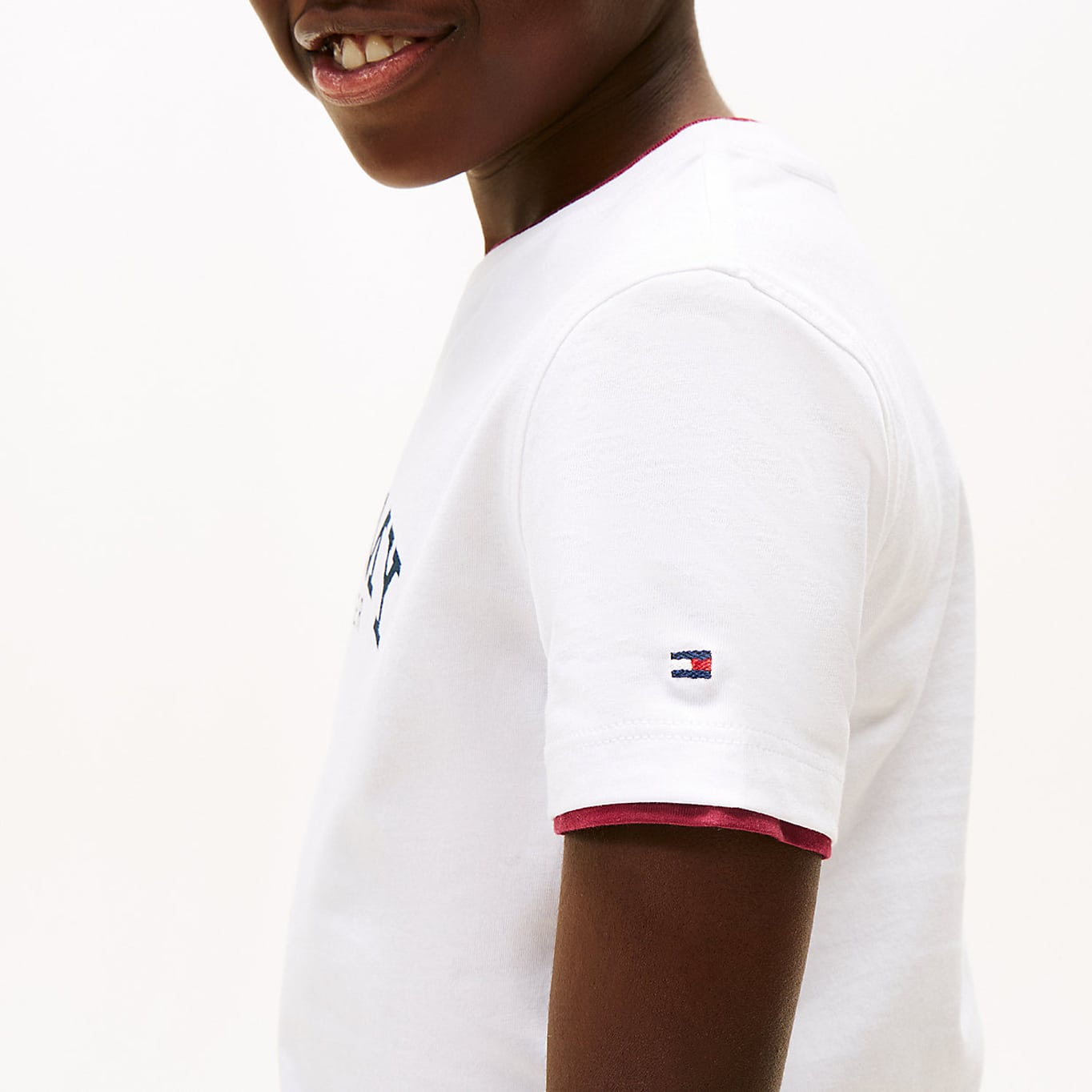 • T-shirt με κλασική λαιμόκοψη – Signature ταινία στον αυχένα – Λογότυπο Tommy Hilfiger στο στήθος – Κεντημένο σημαιάκι στο μανίκι
