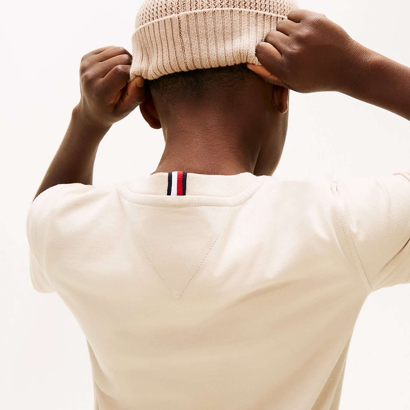 • Κλασική λαιμόκοψη – Signature ταινία στον αυχένα – Λογότυπο Tommy Hilfiger στο στήθος – Κεντημένο σημαιάκι στο μανίκι