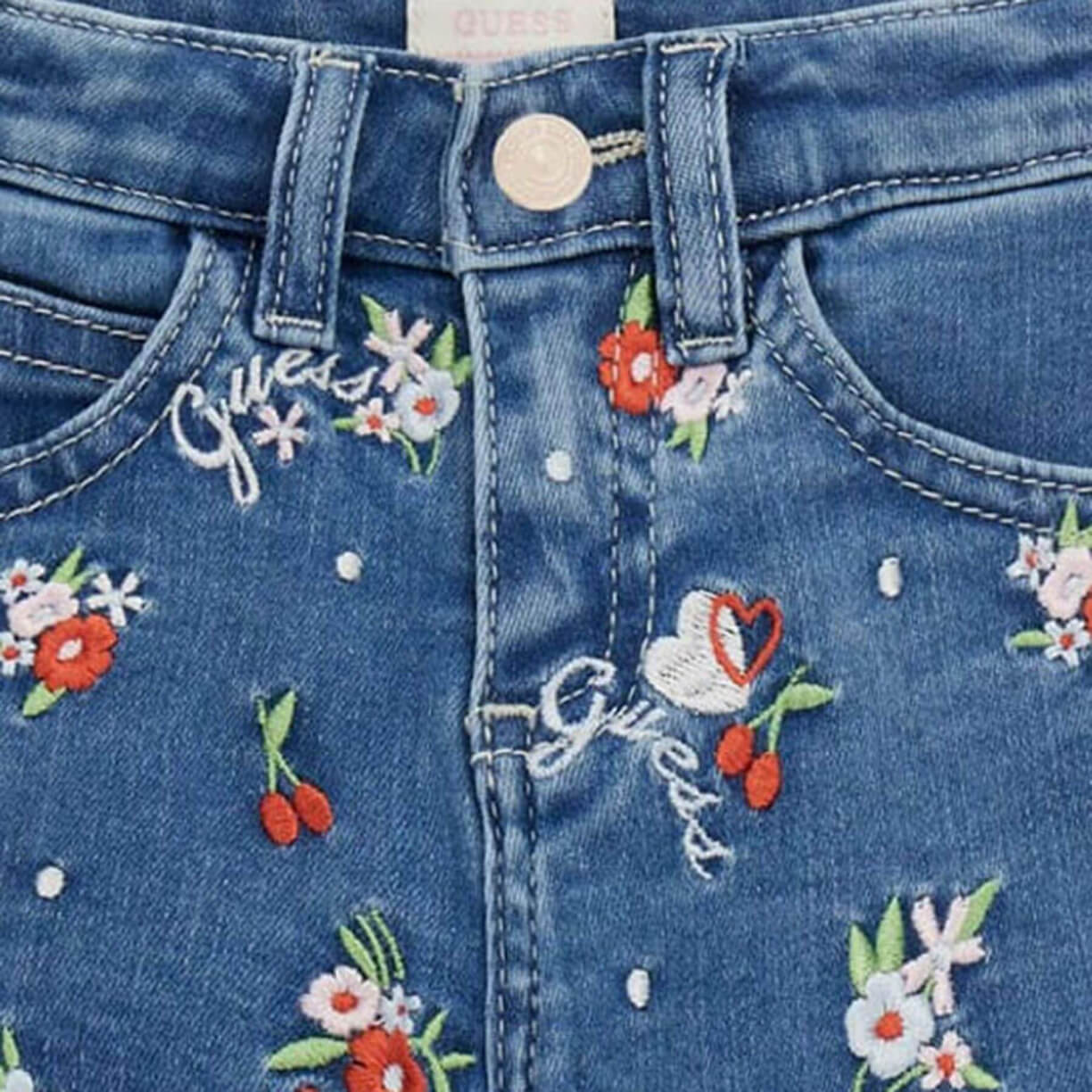 • Σορτς jean Guess με κέντημα, εσωτ.λάστιχο αυξομείωσης στην μέση